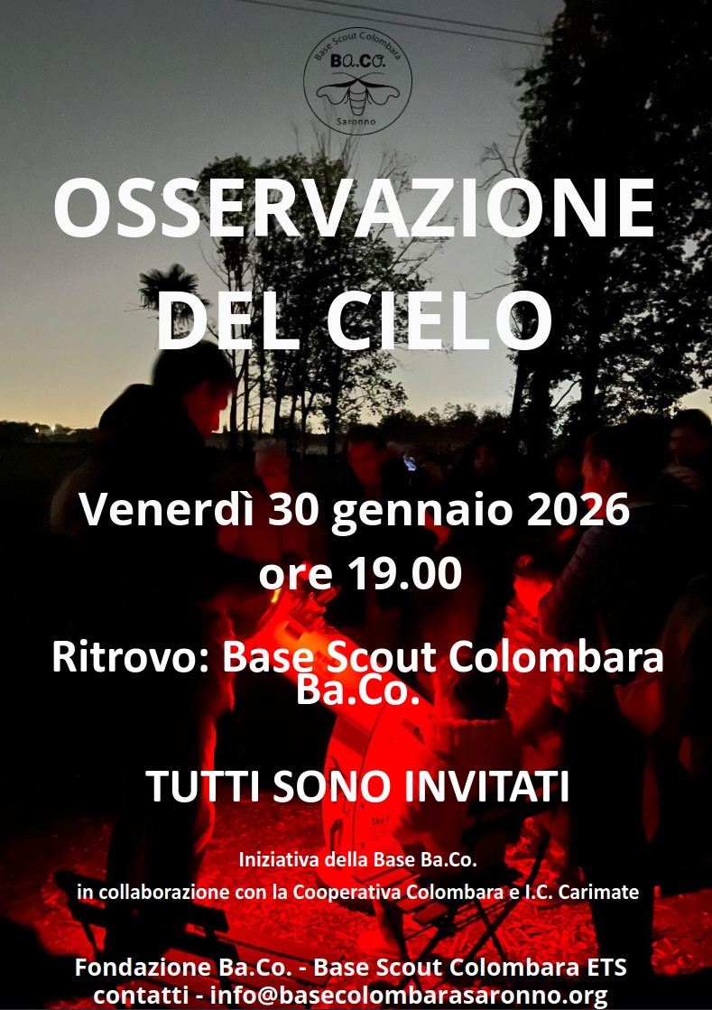 La serata di osservazione del cielo presso la base scout, prevista per lo scorso dicembre e rinviata per maltempo, si terrà il prossimo 30 gennaio.